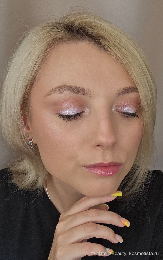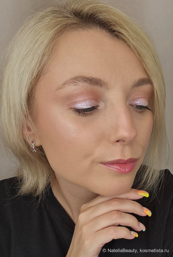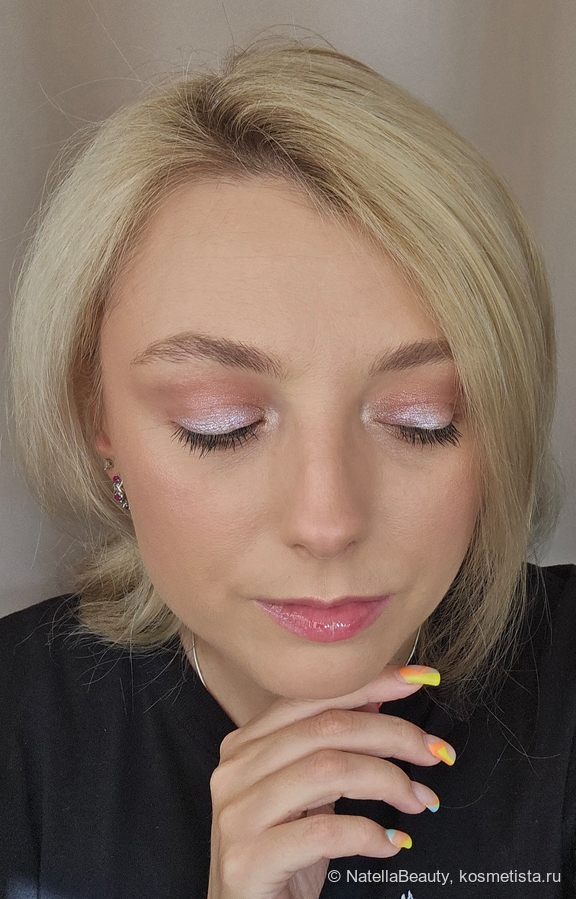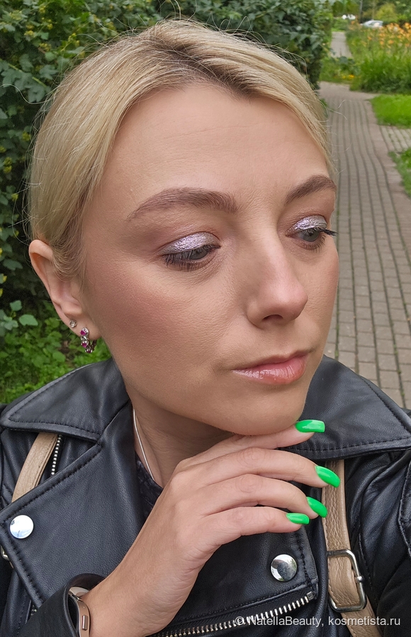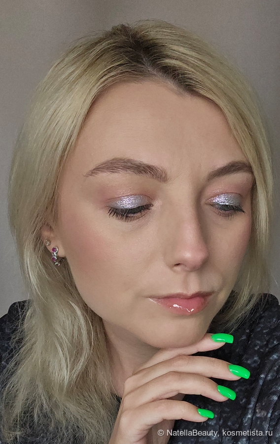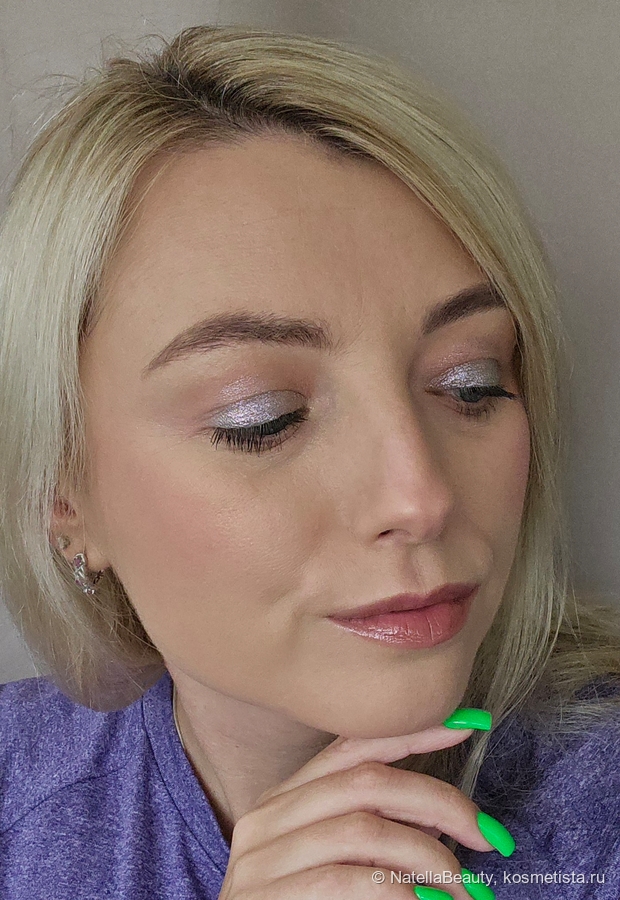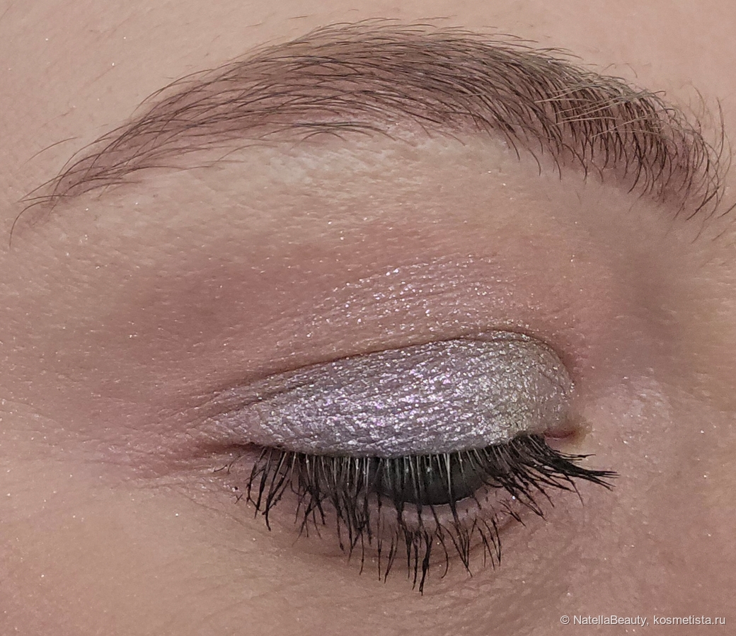 Блестки здесь крупные, будто фольгинированный эффект получается на веке.