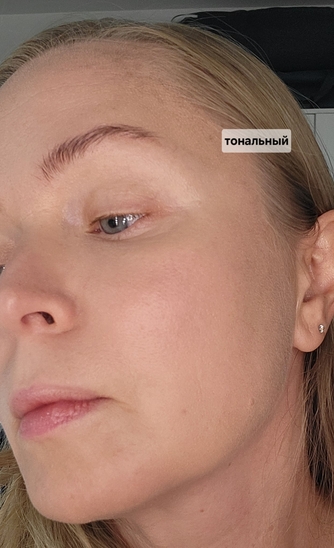 У меня есть полное впечатление, что тональный блюрит кожу, перекрывая дисколорит и синеву от вен (представим на этом месте синячки и пигментацию на лице).