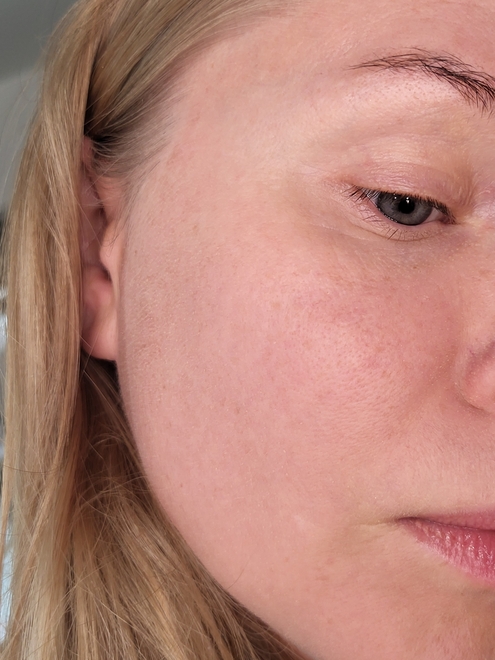 Что пытаюсь перекрыть: пигментация от загара, веснушки, красноту от купероза на щеках, расширенные поры на щеках. Тип кожи смешанный, жирнится в Т-зоне.