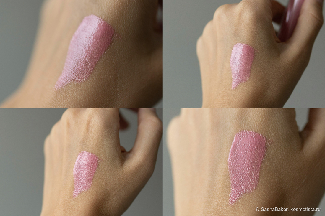 Блеск стойкий и не липкий, вполне комфортный, в общем. Губы не сушит. Стойкость на пару часов. Отдушки нет. Но оттенок мне не подошел. Холодный светло-розовый оттенок неестественно выбеливает мои губы, создавая эффект болезненной бледности. Формула активно затекает в морщинки, подчёркивая текстуру вместо её маскировки, и это с учетом моих гиалуроновых надутых губ.