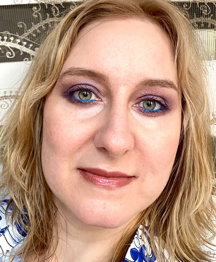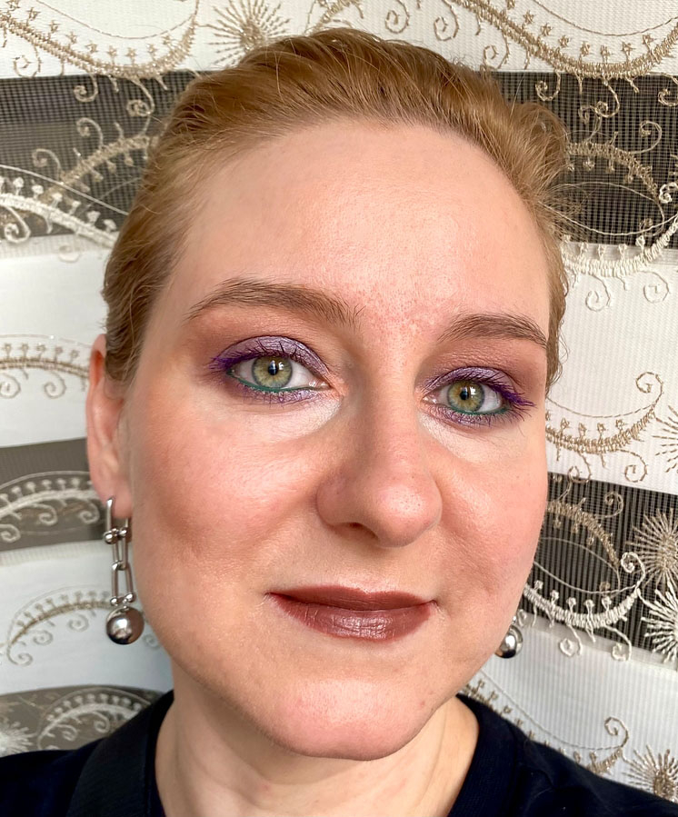 Общий образ мне понравился, но не на все 100. Мне не хватило лоска, вечерней густоты и яркости оттенков. После первого опыта я поняла — палетка дневная, лично для меня.