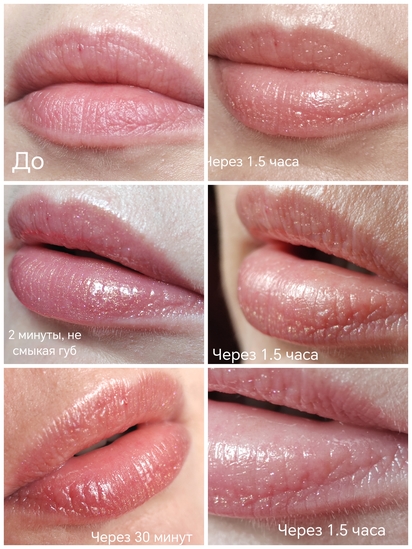 — ещё через 10 минут блеск мигрирует со слизистой губ, образовывавается белая полоска