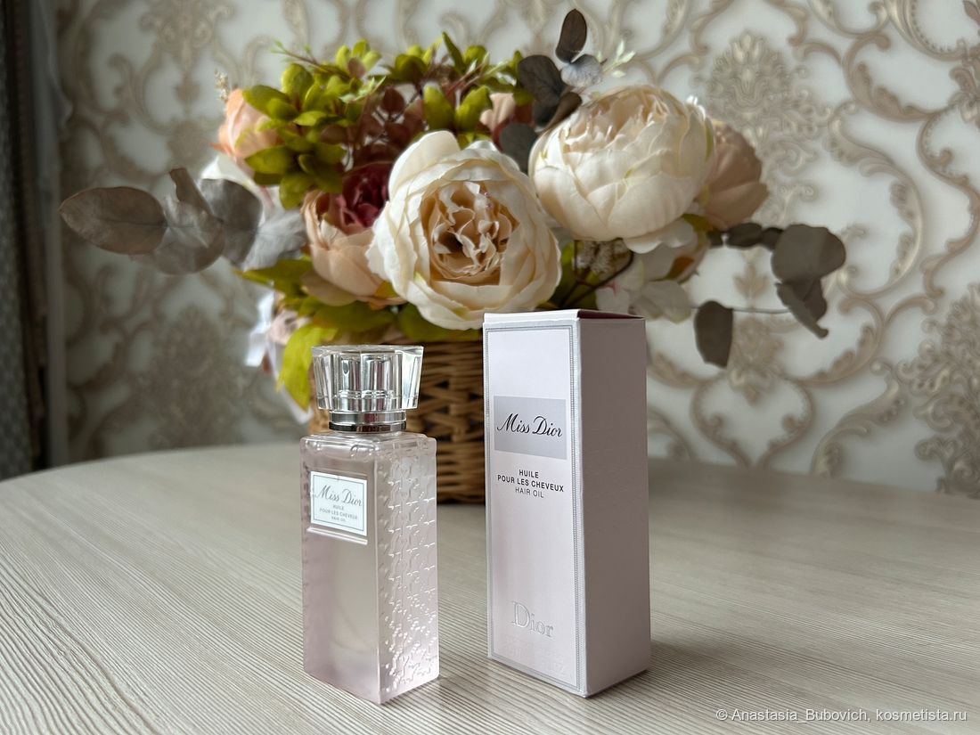Масло ароматное, легкое, не утяжеляет и не жирнит волосы, не превращает их в сосульки. Оно даёт увлажнение и питание прядям, однако мне кажется, что ухода от более профессиональных средств для волос будет больше. Это скорее, приятное баловство для любителей аромата Dior Miss Dior Blooming Bouquet, дополнение к линейке Miss Dior в виде «уходового бонуса».Масло дарит волосам аромат духов буквально на полчаса-час, после чего выветривается. Милая игрушка для девочек и отличный вариант для подарка.