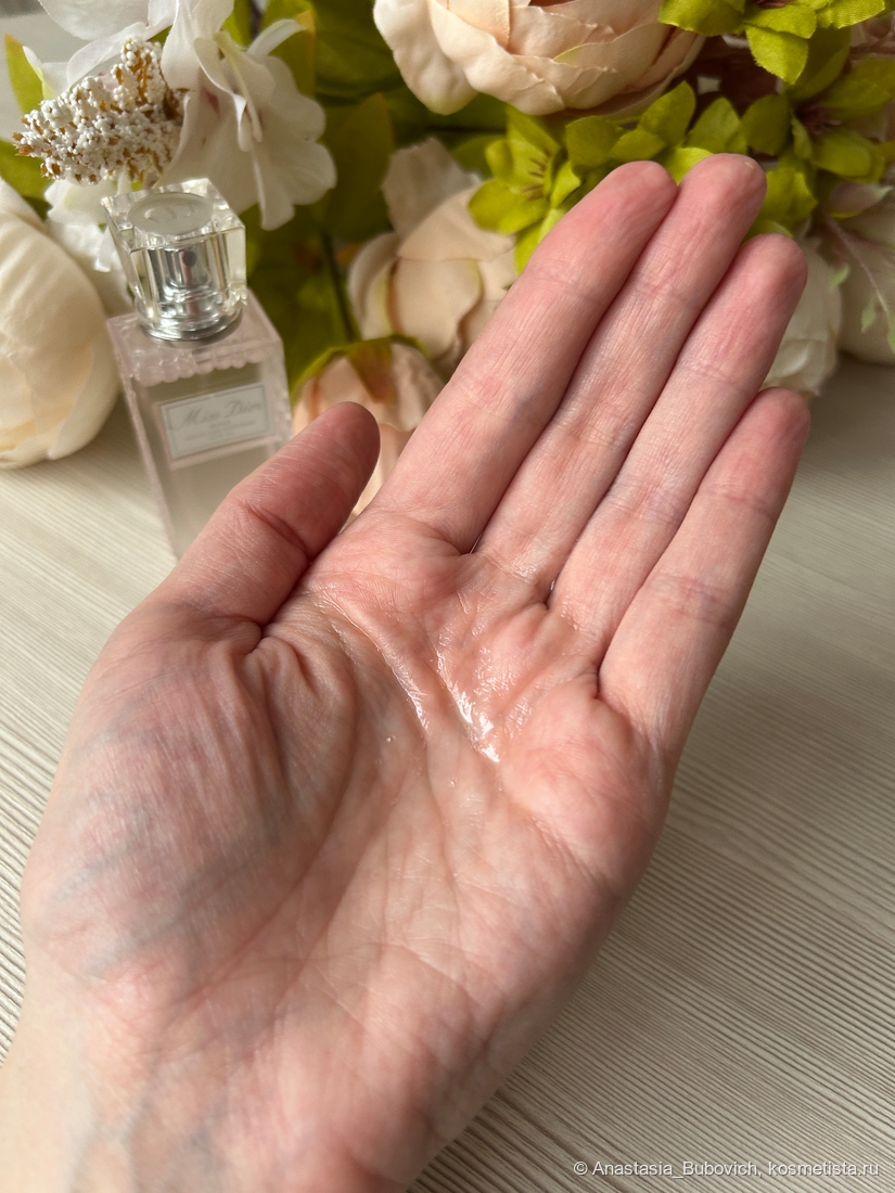 Масло водянистое, легкое, прозрачного цвета с ярко-выраженным ароматом туалетной воды Dior Miss Dior Blooming Bouquet.
