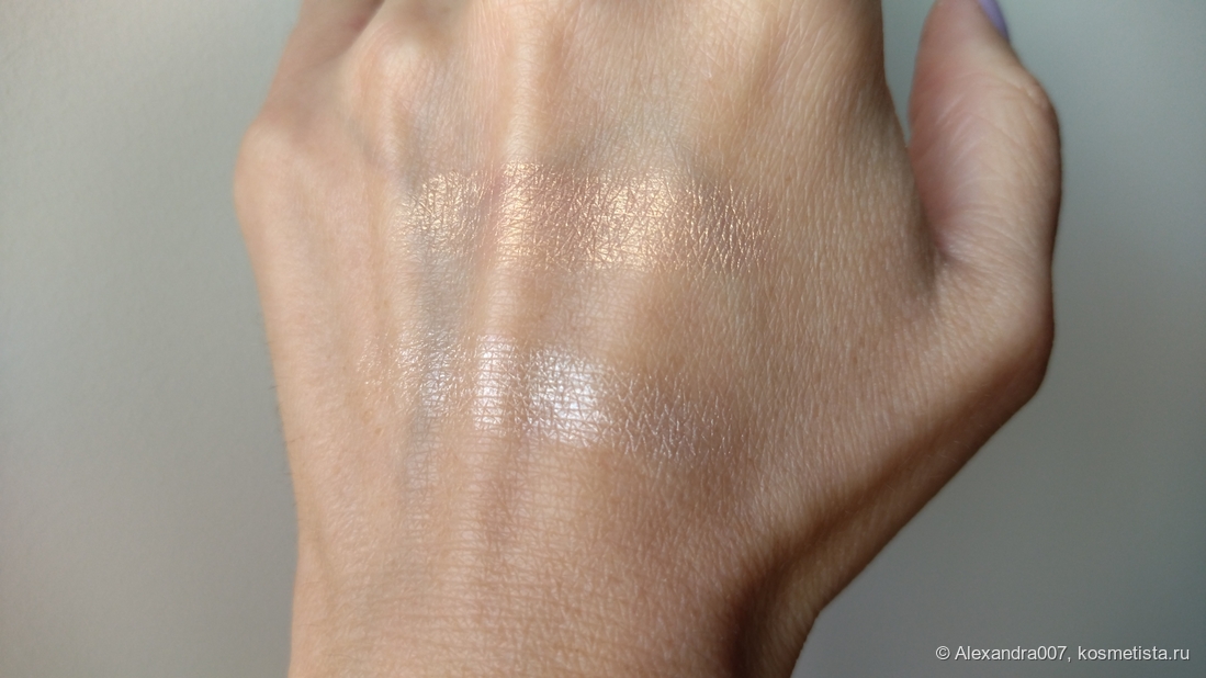 На свету 1 оттенок сразу отливает золотым, а розоватая база сливается с оттенков кожи.Феномен однако. Поэтому можно смело брать верхний ряд в качестве хайлайтеров!😎