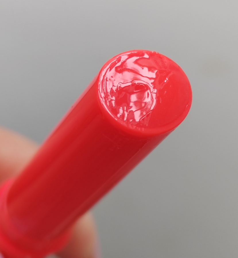 Цвет бальзама яркий, кораллово-красный. Но на губах он смотрится полупрозрачно.