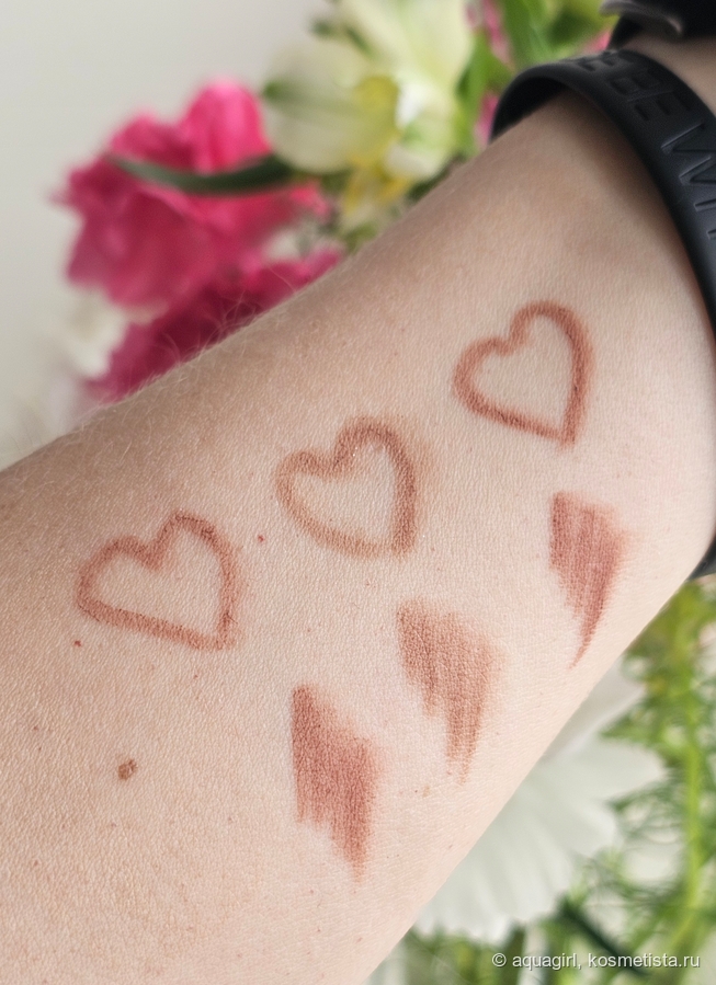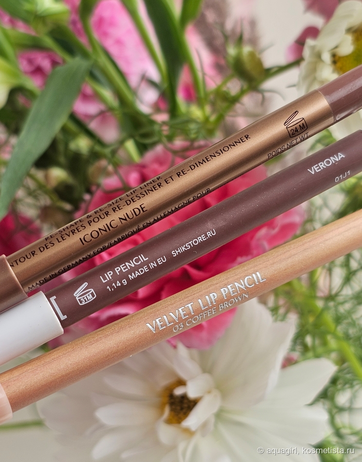 Давайте посмотрим оттенок в сравнении с другими карандашами. Charlotte Tilbury Iconic Nude, Shik Verona и Clio Coffee Brown.