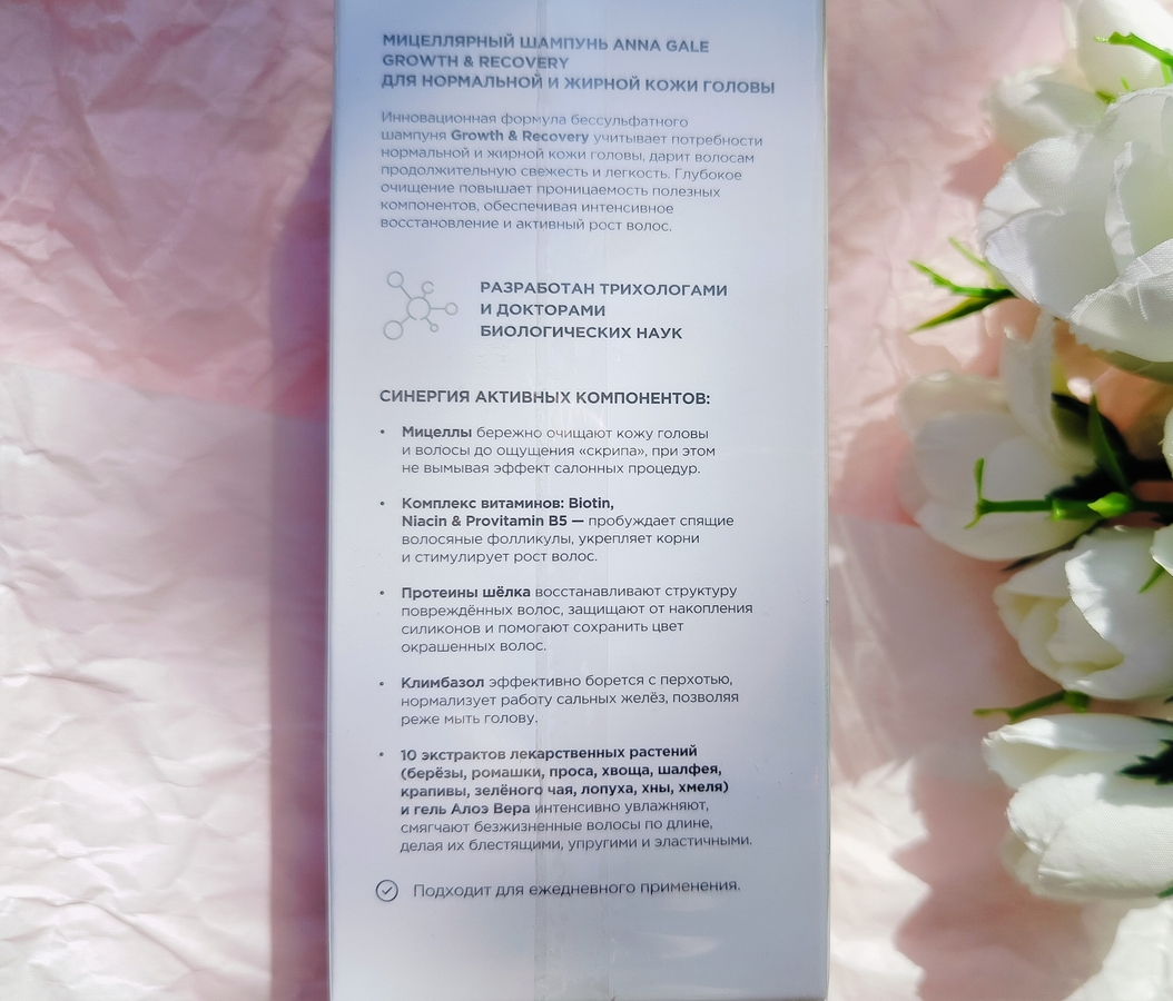 Так и произошло моё знакомство с шампунем Anna Gale Micellar Shampoo Growth And Recovery отечественного премиального космоцевтического бренда Anna Gale, разработанным командой трихологов, биологов, технологов и докторов наук и имеющим несколько достойных премий.