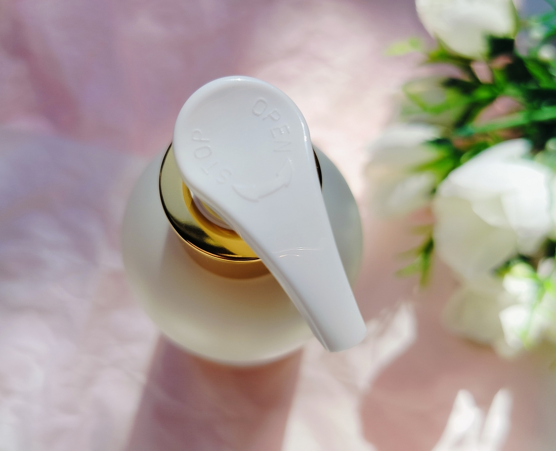 Дизайн флакона предельно минималистичный, без лишнего информационного шума, при этом он выглядит стильно и безупречно — классическое сочетание белого и золота.