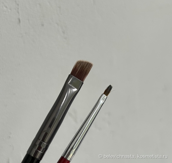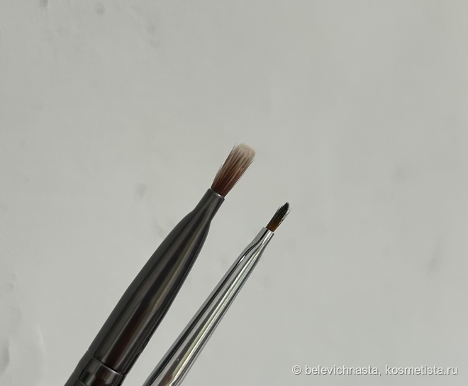 Если стрелка «толстенькая», то хвостик рисую скошенной костью (такие часто для бровей используют), если стрелка тонкая, то кистью Roubloff SO 02.