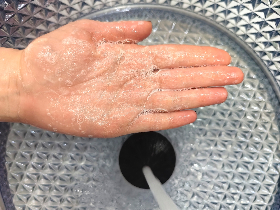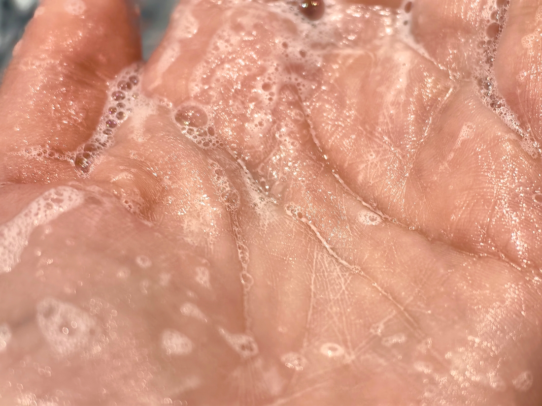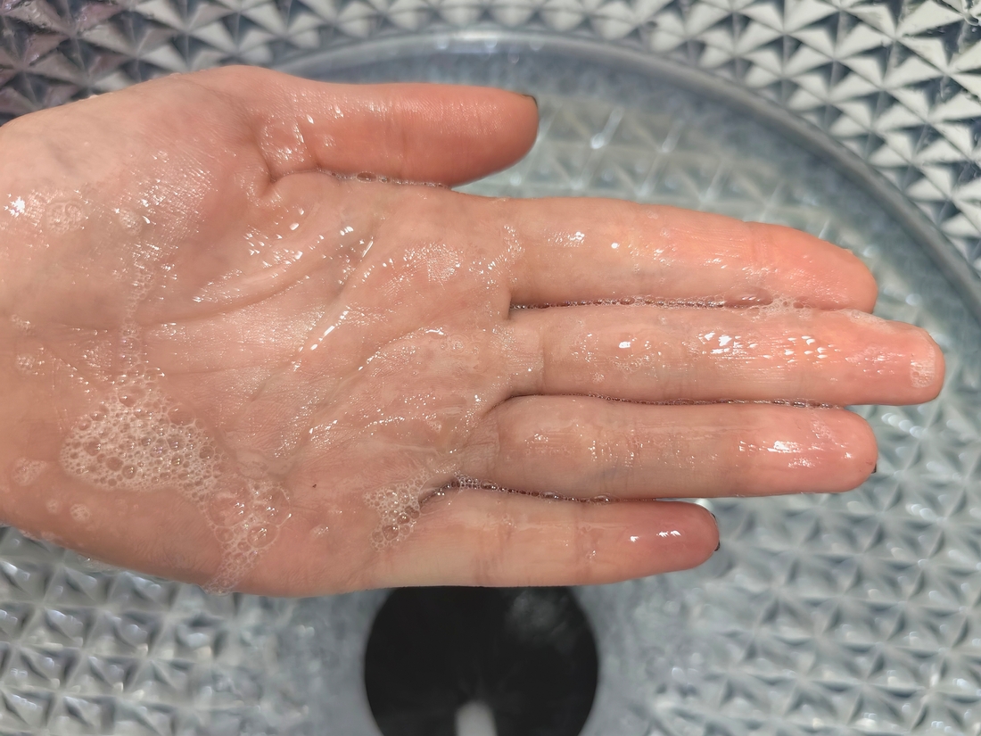 Пахнет мыло просто мылом, каких-то отдушек я не заметила. По мне это скорее плюс: приятный аромат чистоты, который не остаётся на коже и не конфликтует с отдушками других моих мыльно-рыльных.