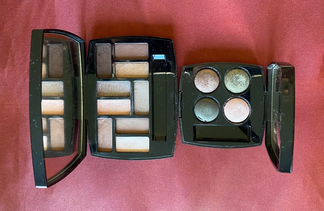 Описывать шанелевские упаковки — дело в высшей степени неблагодарное, тут как минимум с нулевых все стабильно и неизменно: картонная коробочка, чёрный глянцевый пластик, два грамма теней и наклейка на попе, гласящая, что изготовлены они не где-нибудь, а в Италии.