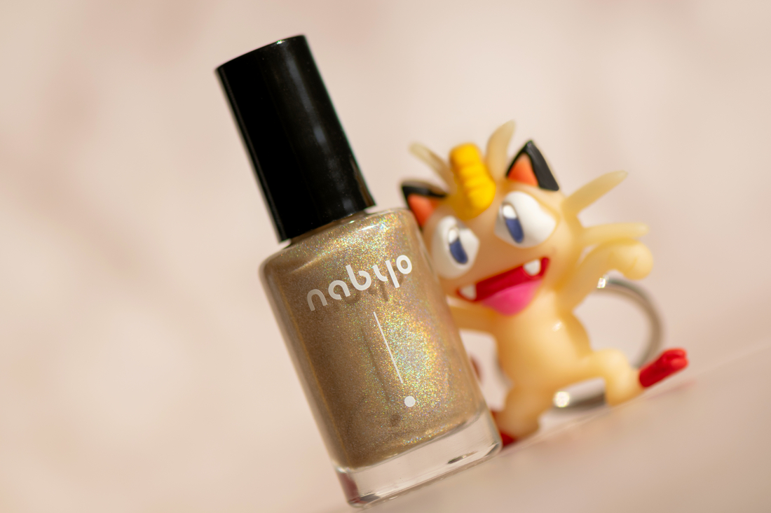 Голографики идентичны по нанесению: чуть густоваты, но распределяются хорошо, не полосят, не тянут за собой предыдущий слой, не пузырятся, не плешивят. Первый слой ложится тонко, второй уже выглядит хорошо и ровно, но мне захотелось еще большей потности, поэтому на всех фото Мяут и Слоупок нанесены в три слоя + сушка Nabyo. Родной глянец неплохой, однако топ не помешает. Сохнут нормально. Стойкость у Мяута – около 5 дней, у Слоупока поменьше – около трех. Без сколов. Снимаются без проблем, кожу и ногти не окрашивают.