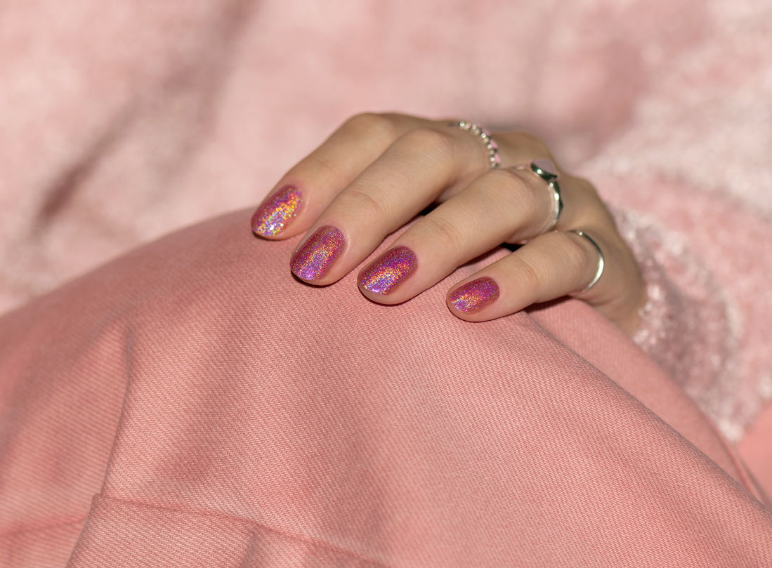 Цвет: нежно-розовый голографик.