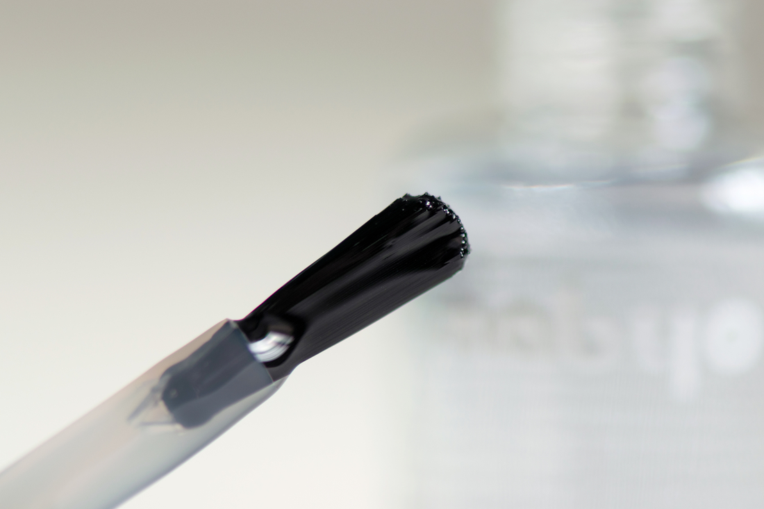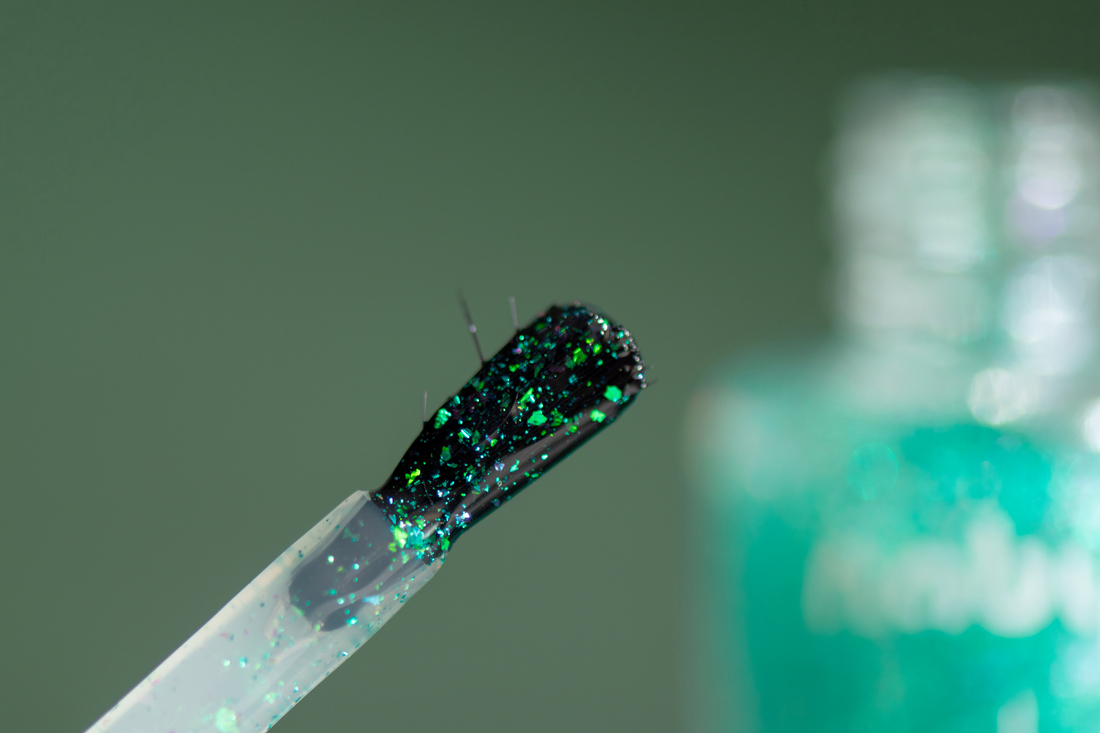 Кисти у всех четерых лаков одинаковые (фото ниже) – полукруглые, плоские, удобные. К сожалению, Кварк достался мне с бракованной кисточкой, но использованию это не мешает (с топом идеальных линий не требуется)).