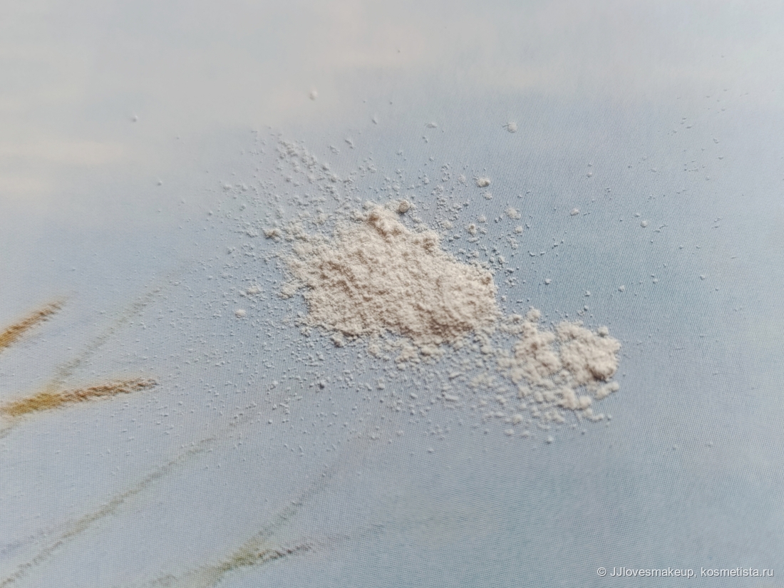 Что внутри: очень тонкого помола пудра, не слишком летучая, дышать рядом можно, сопеть нельзя. Цвет- молочно-белый, запах слабый, косметический.
