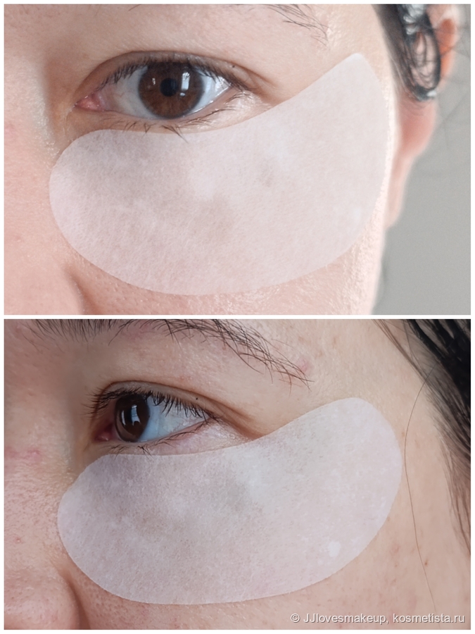 Что делают с моей кожей: хорошо увлажняют, не питают кожу, а именно увлажняют, немного снимают отечность и дают лёгкий лифтинг-эффект и лёгкое осветление кожи под глазами. Наверное, именно эффект лифтинга и уменьшение утренней отёчности мне понравилось больше всего, по крайней мере, мне они заметны. Патчи заменят лёгкий крем для глаз или подойдут для утренней рутины, когда нужно взбодрить лицо и убрать отеки. Я брала их в отпуск как единственный уход для кожи вокруг глаз, желания поменять средство, купить крем или что-то добавить не было. Глаза не раздражают, кожу под глазами успокаивают, после них есть приятное ощущение прохлады и увлажнения, как после алоэ-геля.