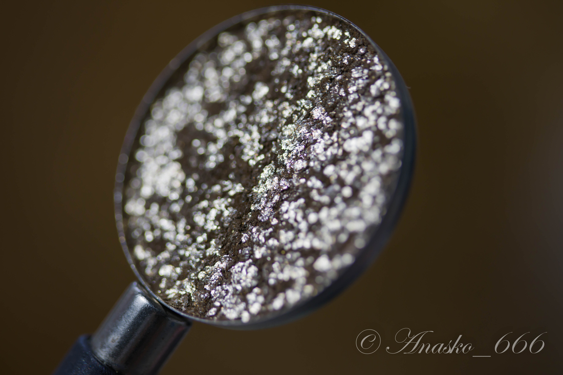 Единственный недостаток рефила в том, что он необыкновенно летуч. «Живет» в магнитной палетке в своей родной упаковке с дополнительной защитой. Иначе я подозреваю, что его разнесет по всей палетке очень быстро. Текстура у рефила хлопьевидная, но это не те жесткие и «жующие» хлопья как, например, у некоторых новых рефилов Terramoons. Но набирать лучше микро дозами, слегка прикосаясь к рефилу, ни в коем случае не проводя с нажимом, так как в этом случае на инструменте будет примерно половина рефила. Я наношу пальцем по чуть-чуть на липкий праймер. В течении дня не скатывается и не осыпается. Если переборщить с количеством нанесенным на веко может подчеркнуть текстуру.