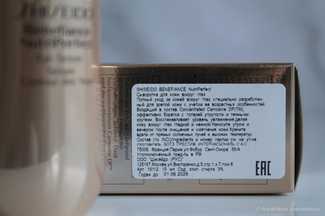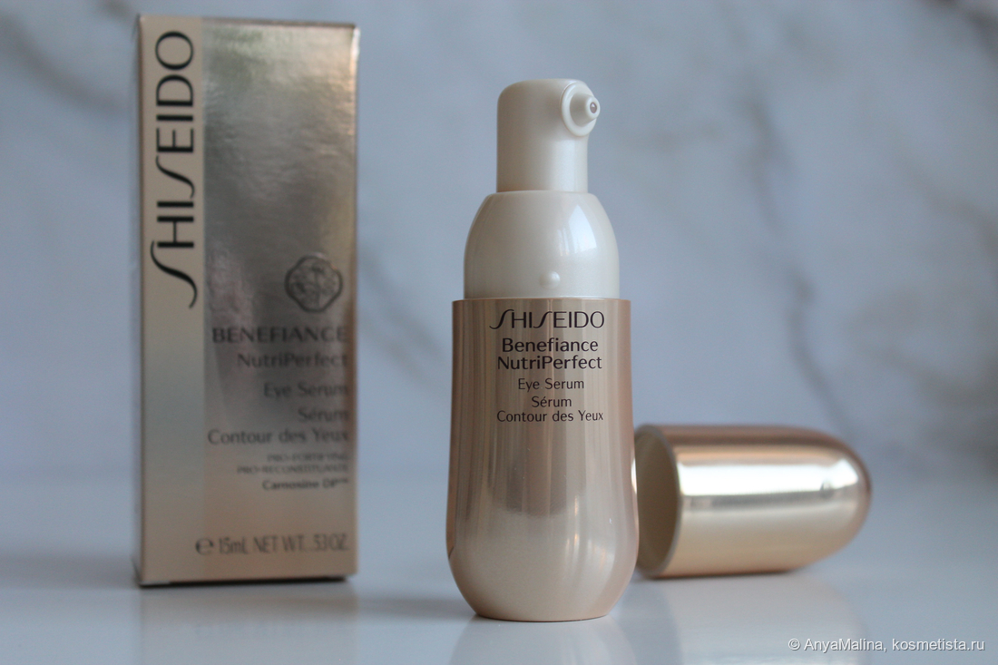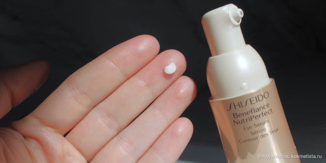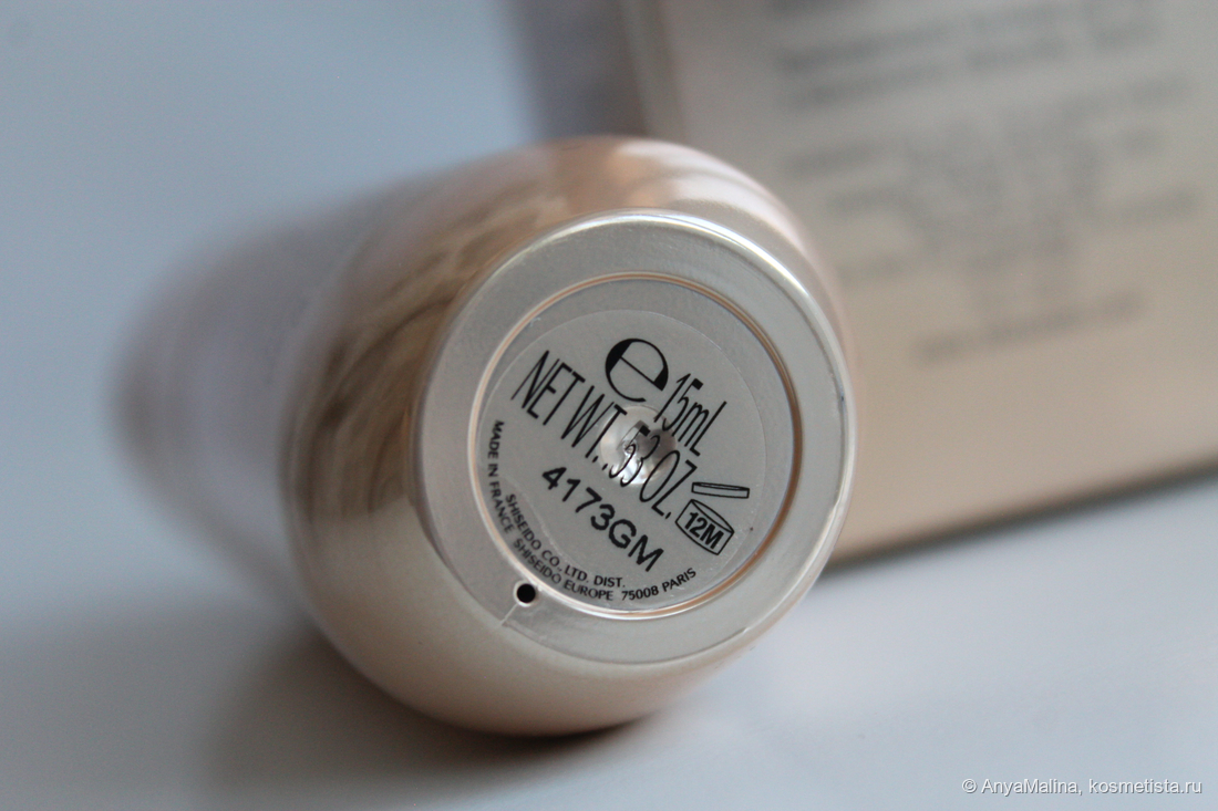 Объем стандартный 15 мл, цена для этой линейки Шисейдо, вроде как тоже. Радостно, что это люкс, который просто пошёл и просто купил, не дожидаясь пары месяцев доставки. Разливают зелье для упругости и против темных кругов во Франции, да это даже по запаху заметно: отдушка у этой сыворотки для подглазий насыщенная цветочная, чуть ретро в духе Chanel №5 с явной доминантой лилий и розы, может быть, и ландыш разнюхать можно.