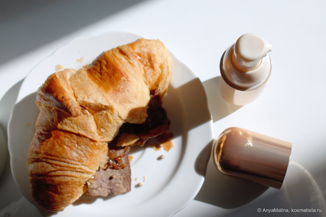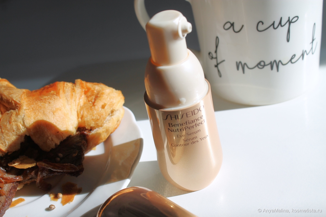 Сначала я использовала сыворотку утро/вечер соло (хотя нам предлагают наносить ДО основного средства ухода, да по четырем областям: под глаза, на внешние уголки глаз, на центр верхнего века и между бровями), а после того, как ее потеснил отличник от Clarins, возвращаюсь к Shiseido только изредка для подглазий, чаще на межбровку и на носогубки. Спасибо, что макияж на таком пироге не катается и не жирнится быстрее.