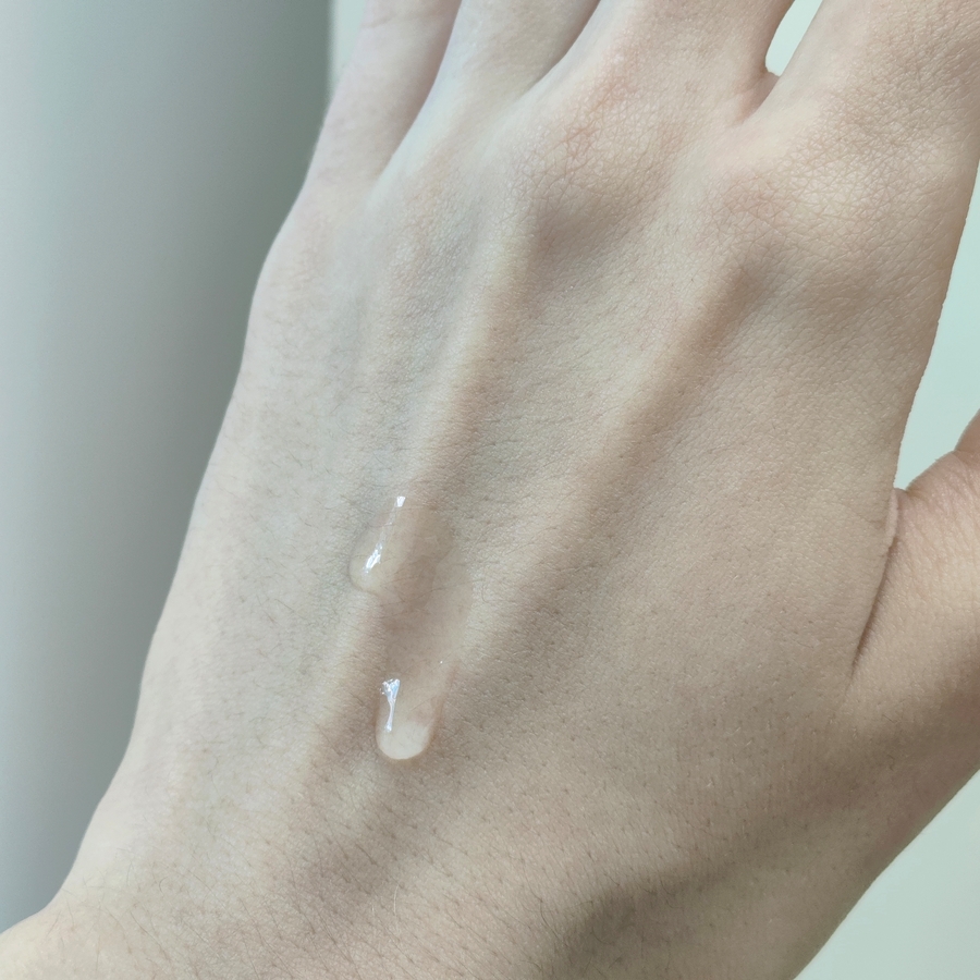 Продукт прозрачный, оттенка практически не имеет. По консистенции он довольно жидкий, растекается при нанесении: