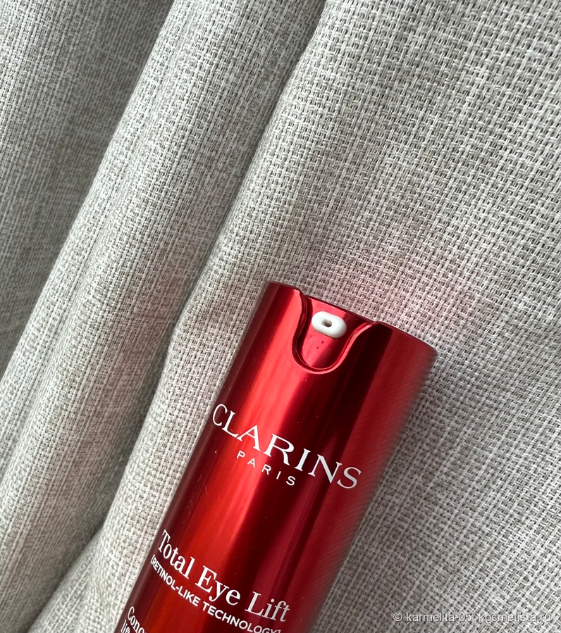 Красный сверкающий многоразовый и воздухонепроницаемый алюминиевый футляр с встроенной помпой. Кнопка прекрасно работает. Дозатор подаёт ровно столько крема, сколько нужно на оба глаза. Правда, у меня носик чуть забивается, но немного больше усилия при нажатии и всё в порядке.