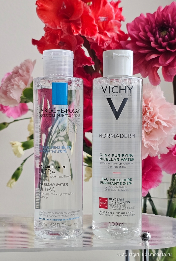 Функционал: одинаковый, оба продукта отлично очищают кожу. Вода Vichy должна справляться и с водостойким макияжем. По факту, LRP его тоже снимает.
