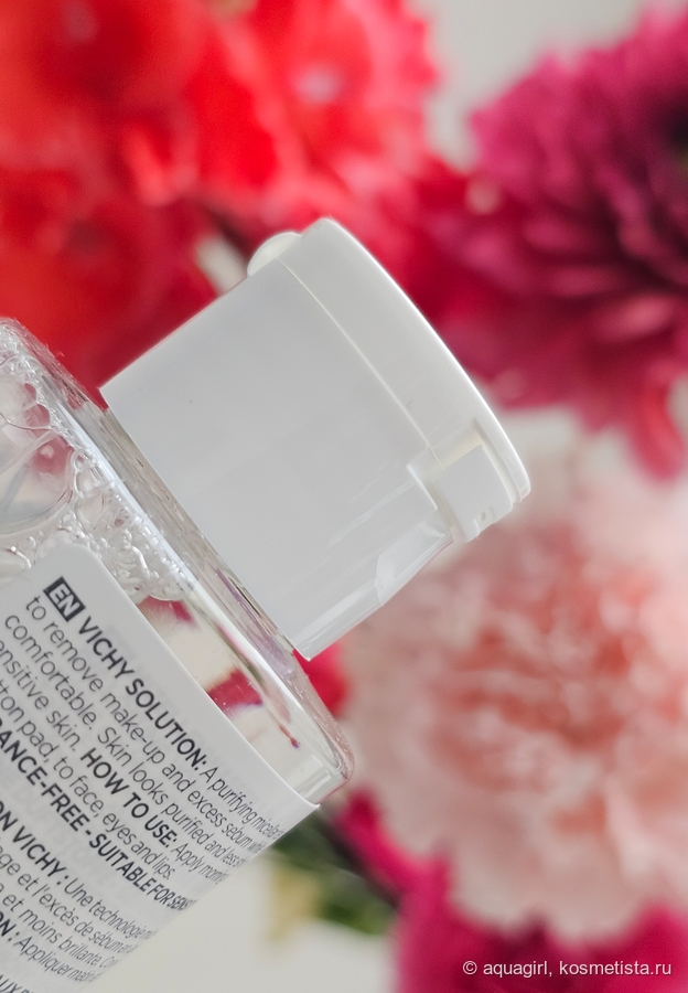 Заявлено, что мицеллярная вода Vichy снимает в том числе водостойкий макияж.