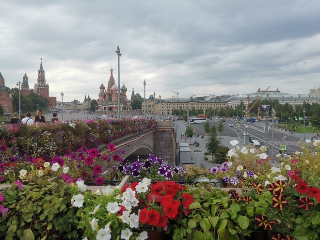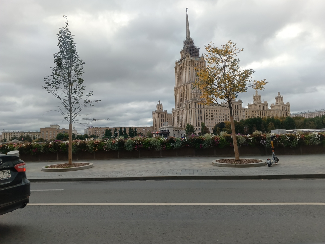 Вызвала машину и поехала домой, так как сил на пеший путь уже не оставалось. К слову в этот день я прошагала больше одиозных 10000 шагов. Пока ехала домой обратила внимание, что Краснопресненскую набережную замечательно украсили цветами. Вряд ли они живые, но из окна машины, смотрелось прелестно даже в пасмурный и хмурый день.