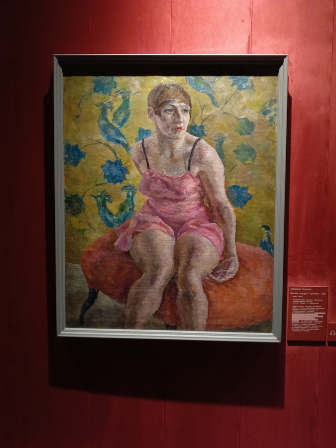 Любителям винтажного стекла будет на что посмотреть, собрано множество прекрасно сохранившихся флаконов, наборов, миниатюр и прочего красивого. Достаточно много картин, плакатов, планов и схем — свидетелств того времени. Я лично залипла на эту великолепную женщину. (Женский портрет в розовом Александр Осьмеркин 1923 год)