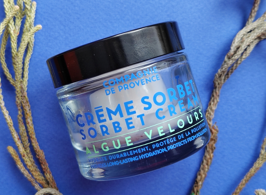 Крем я выбирала по описанию производителя, где говорится о том, что крем-сорбет имеет легчайшую текстуру, подходит для сухой кожи, а также призван обеспечить длительное увлажнение кожи, до 48 часов.