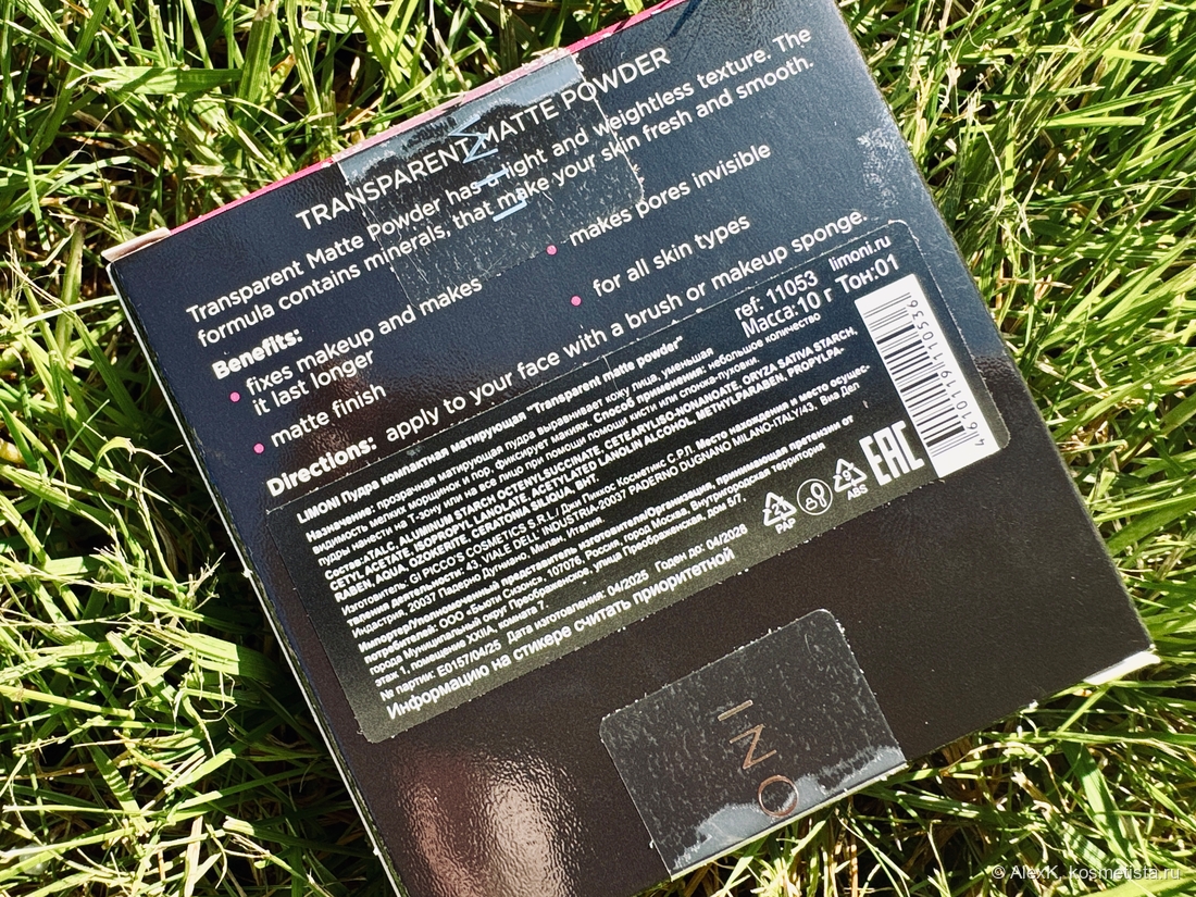 Про бренд Limoni говорить смысла нет, я думаю? Если коротко, это известная российская марка косметики с производствами в разных странах. Например, уход делают в Южной Корее, тени — на родине, а эту пудру — в Италии.