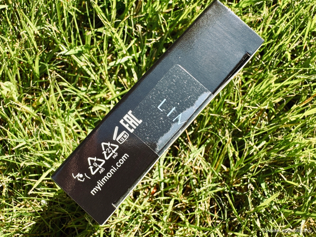 Упаковка. Пудра приехала в черной коробке. Защитные наклейки — на месте. Футляр — черная глянцевая шайба с крупной серебристой надписью Limoni. Замок — магнитный.