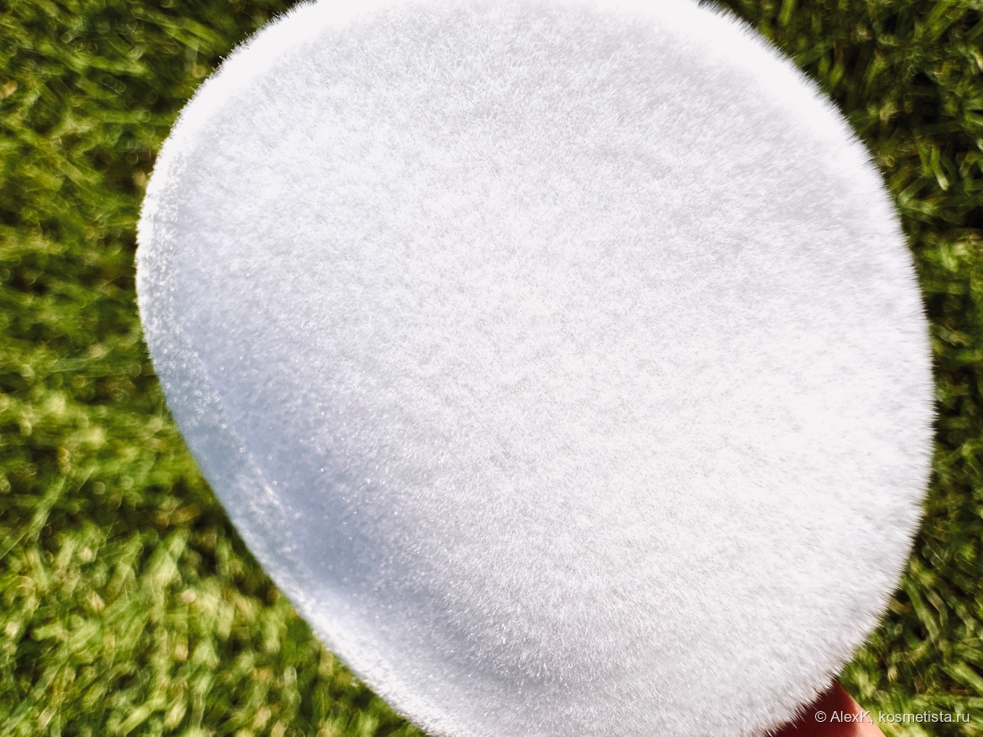 Еще в наличии спонжик. После роскошных пуфиков из корейских кушонов он показался мне скромным. Да и вообще — бесполезным: такие продукты предпочитаю наносить тонко кистью. Но дочь оценила пуховку высоко и активно использует для бейкинга.