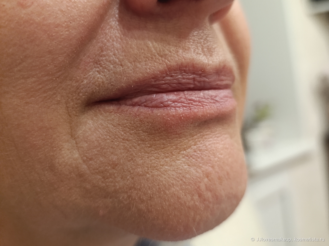 Вот с этого ракурса видно носогубки. Если не хватает увлажнения, область вокруг рта шелушится, ближе к щекам появляются заломы и морщинки.