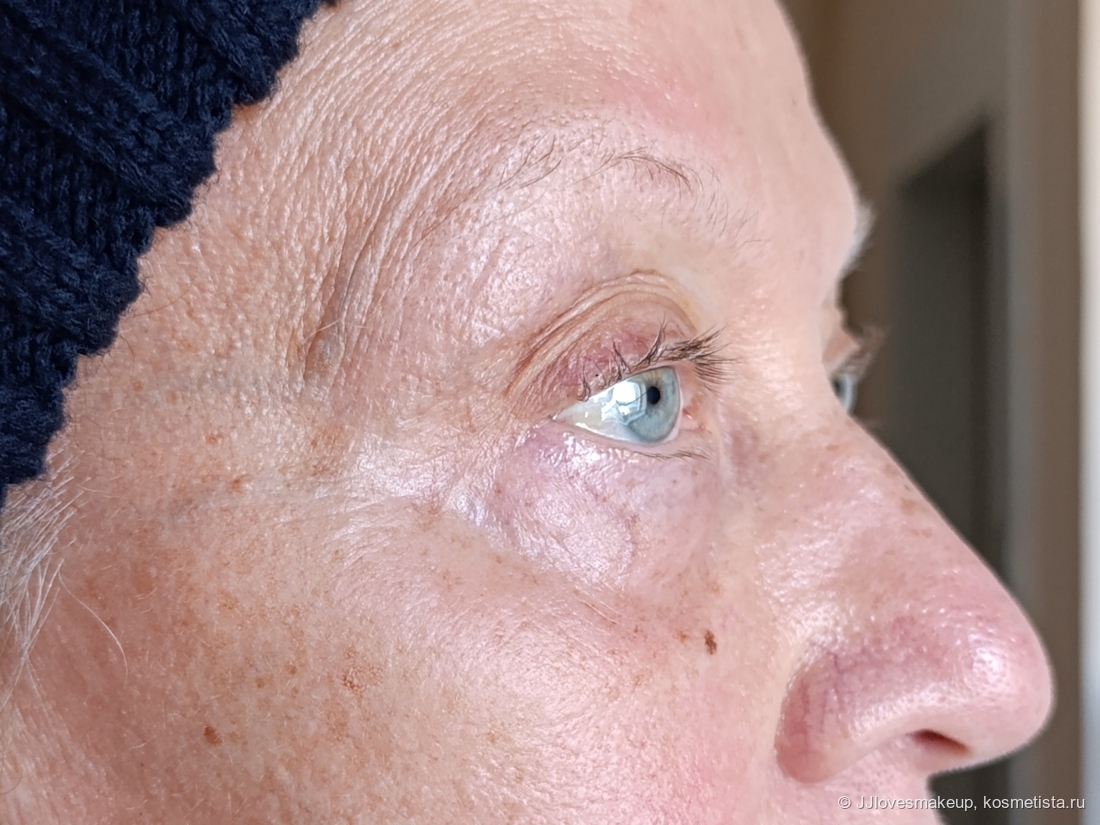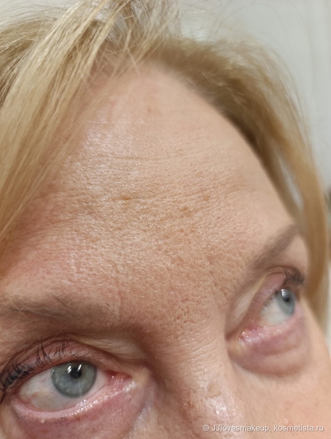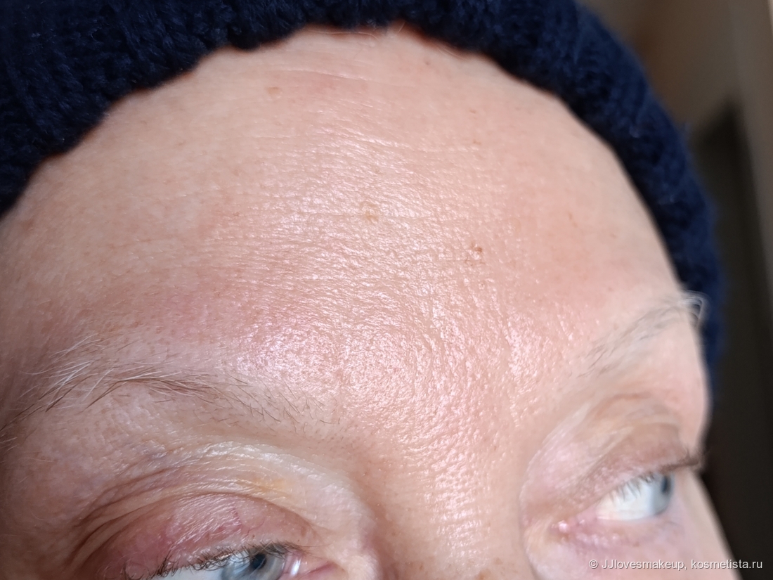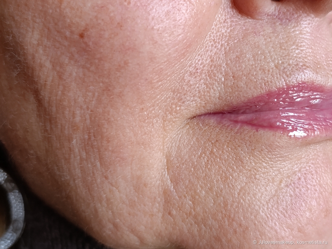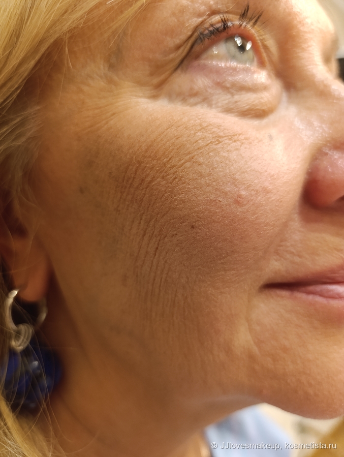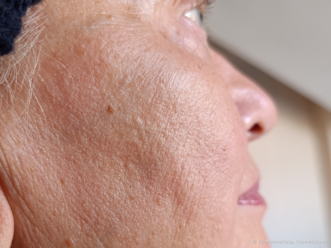 Я заметила то, что мамина кожа сияла изнутри, было очень сложно её фотографировать, пришлось выйти из квартиры, ну не ловилась текстура кожи. Морщинки и заломы тоже уменьшились. А вот цвет лица розовый, у нас солнце, мама эти две недели много гуляла без санскрина.