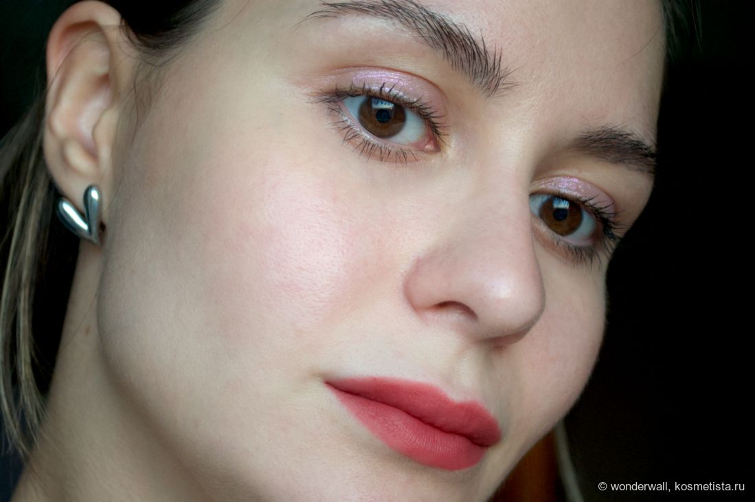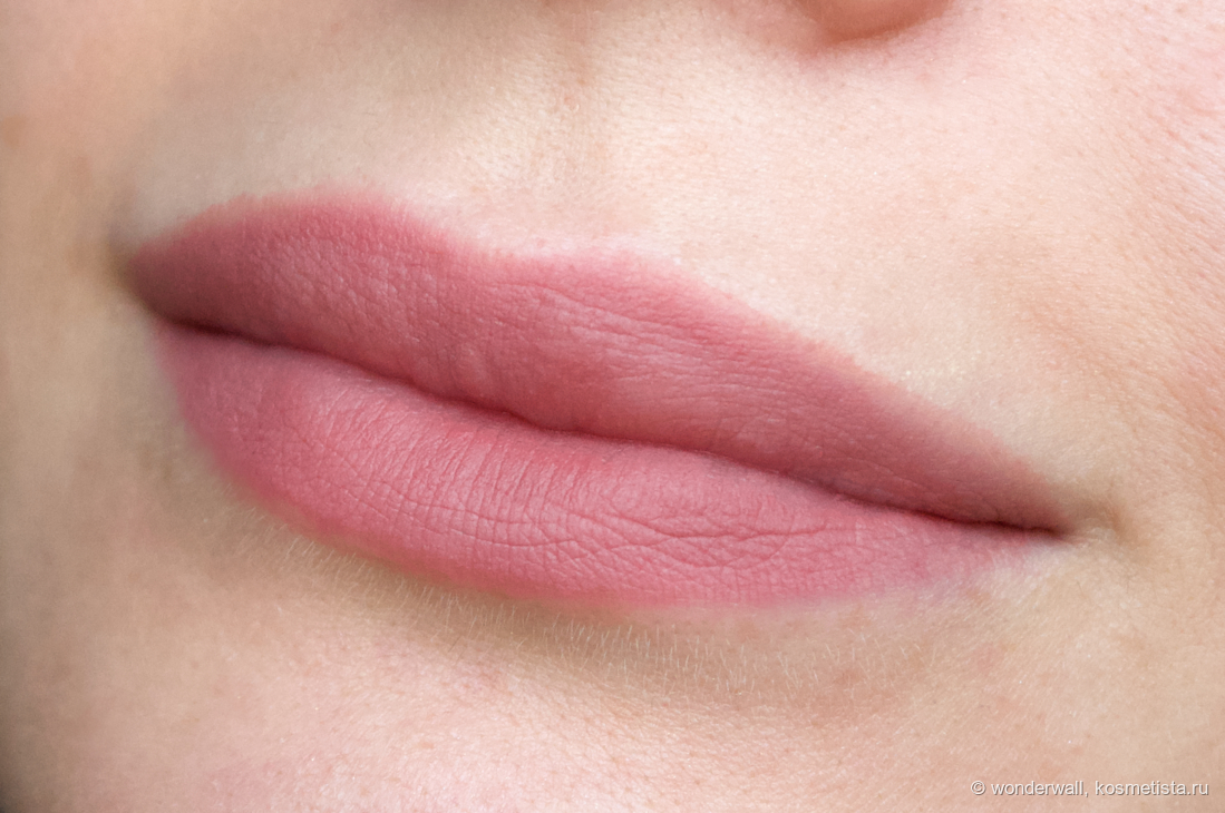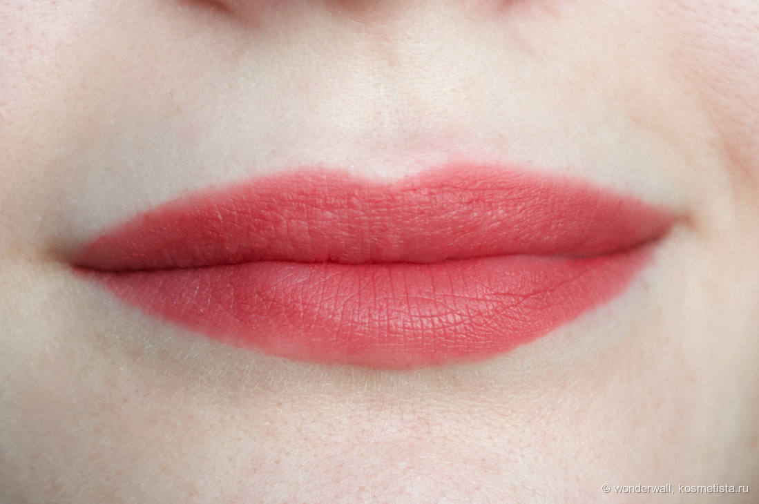 Наносить эти помады на кожу губ мне тоже не слишком приятно. Далеко не всегда получается равномерное покрытие. За счёт обволакивающей и мягкой текстуры это не столь заметно, особенно в жизни, но на фотографиях можно увидеть недочёты. Например, на стыке губ собирается лишнее количество текстуры.