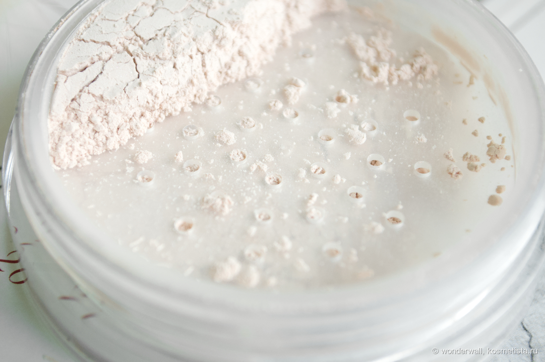 Пудра находится в относительно небольшой (если сранивать с люксовыми) баночке с зеркальной крышкой.