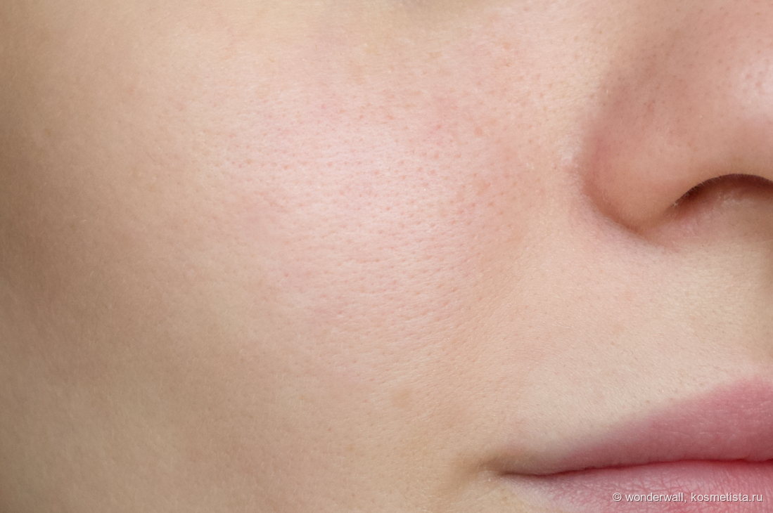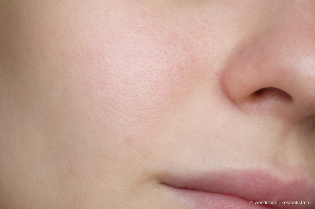 Кожа до нанесения пудры. Без тональной основы, только уходовая косметика: