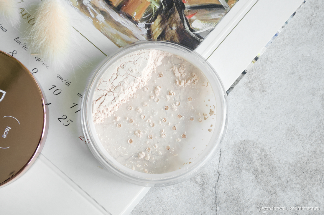 Я наношу пудру небольшой пушистой кистью. Несколько раз провожу по одному участку кожи, чтобы полностью растушевать пудру и добиться невидимого слоя. Текстура сглаживает поры, но не «стирает» их с лица. Кожа приобретает более ухоженный вид, как и сказано в описании.