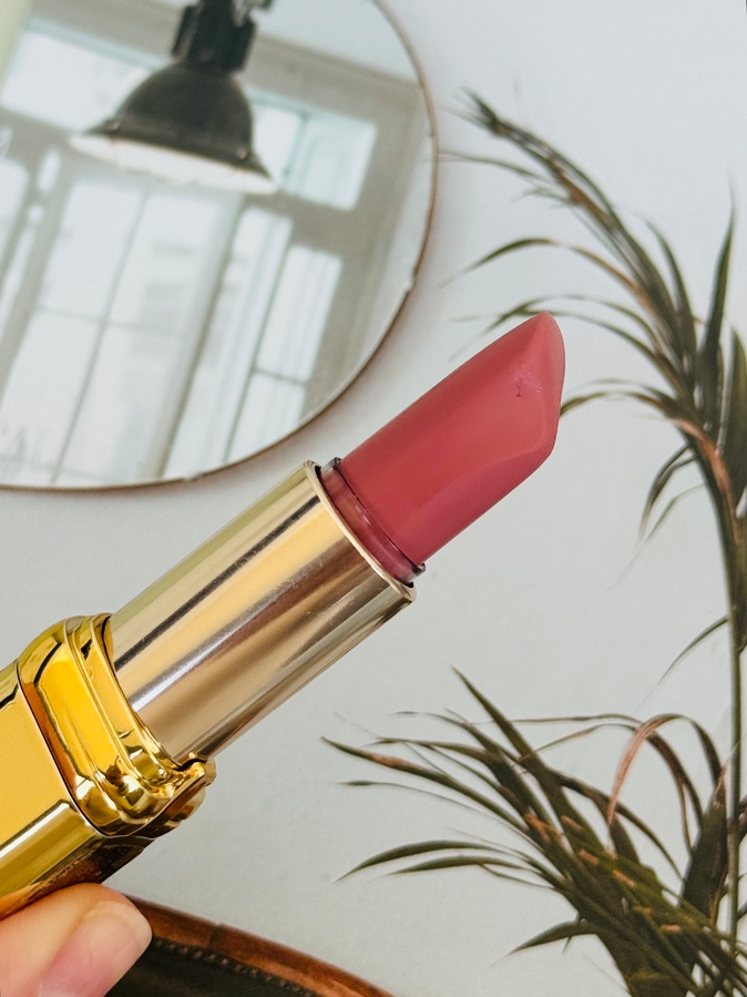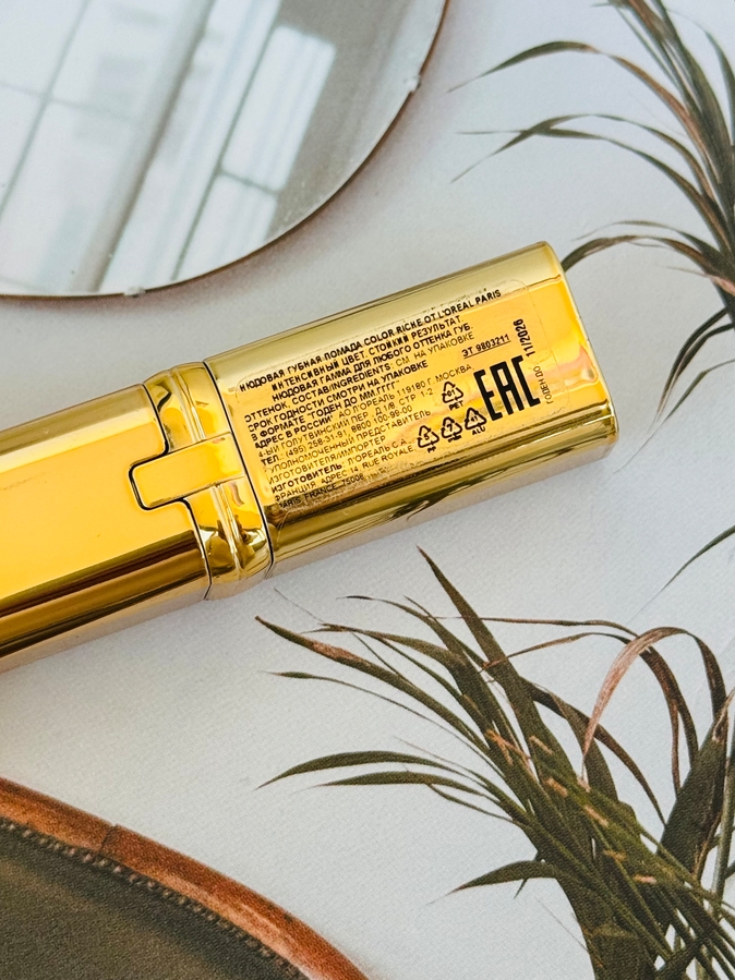 Упаковка у помады с одной стороны и красивая, а с другой стороны я предпочитаю что-то более спокойное, чем такой золотистый футляр. Но по крайней мере ее можно быстро отыскать среди множества других помад в косметичке.