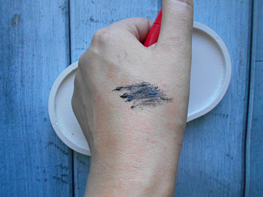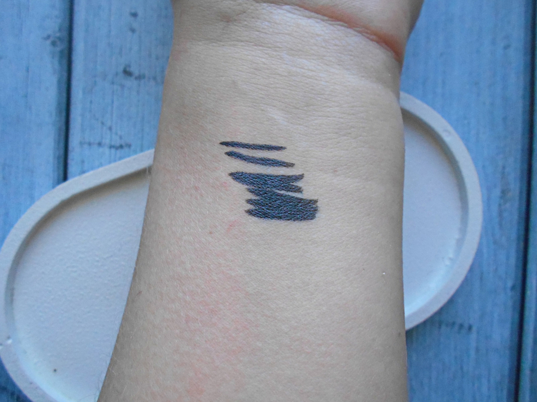 Подводка с аппликатором в виде кисти. За полтора года не засохла. Цвет чёрный, яркий. Формула мне понравилась, но подводка не влагоустойчивая, стрелки размазывались.