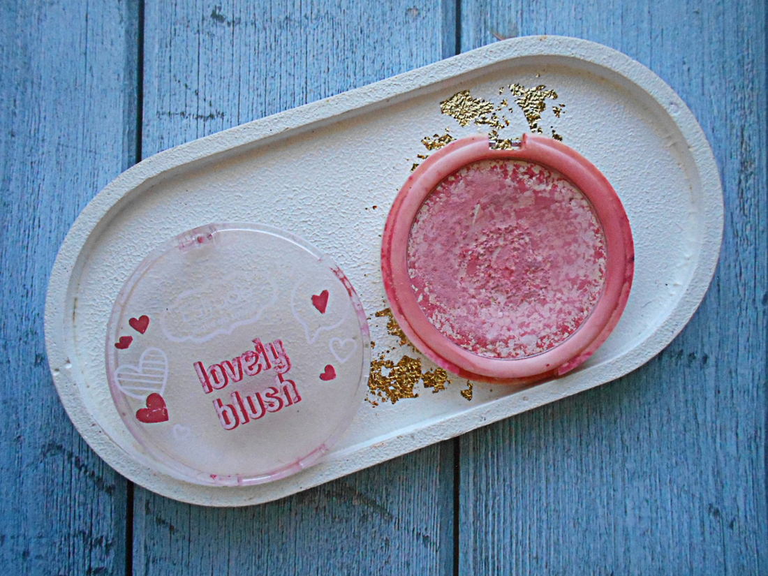 Румянами активно пользовалась примерно полгода, они мне нравились. Финиш у них матовый, оттенок нежно-розовый. Крепление на крышке сломалось быстро. Со временем румяна стали напоминать мел, поверхность у них затёрлась. Решила от них избавиться, так как они стали плохо набираться на кисть.