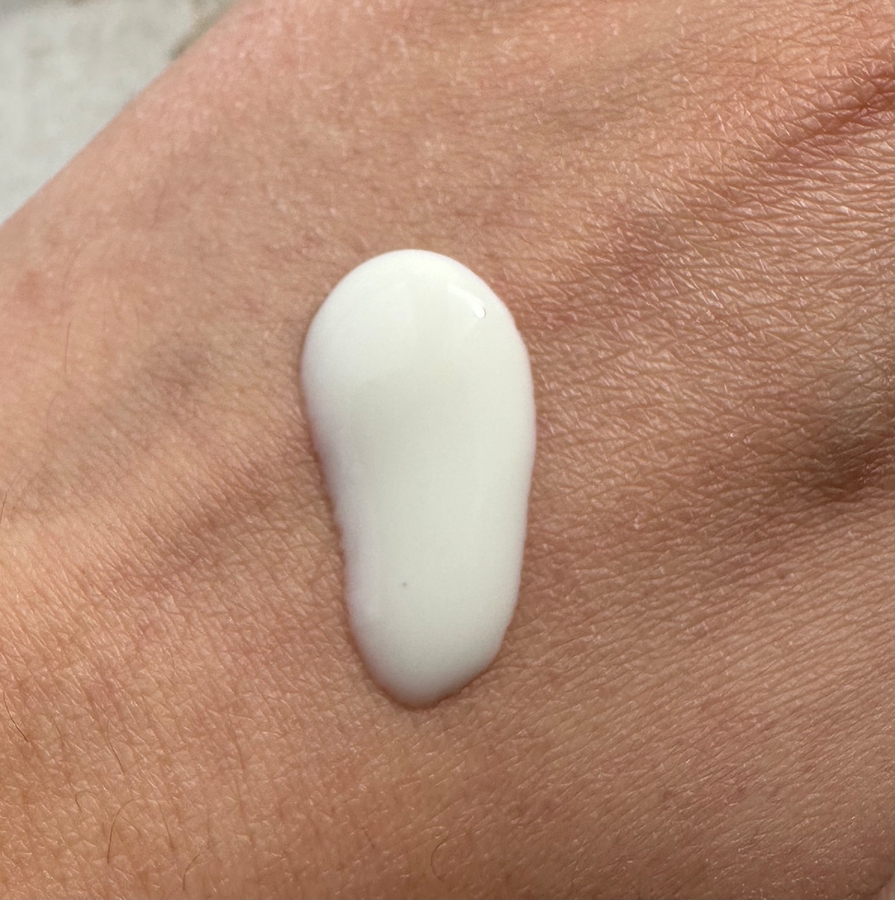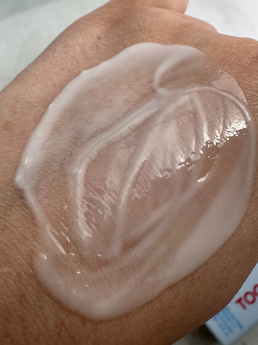 Это один из самых легких и водянистых санскринов, что я пробовала. По консистенции ближе к флюиду, чем к крему. На коже первое время создает влажный финиш — тот самый эффект глазированного пончика, который выглядит свежо и ухоженно.