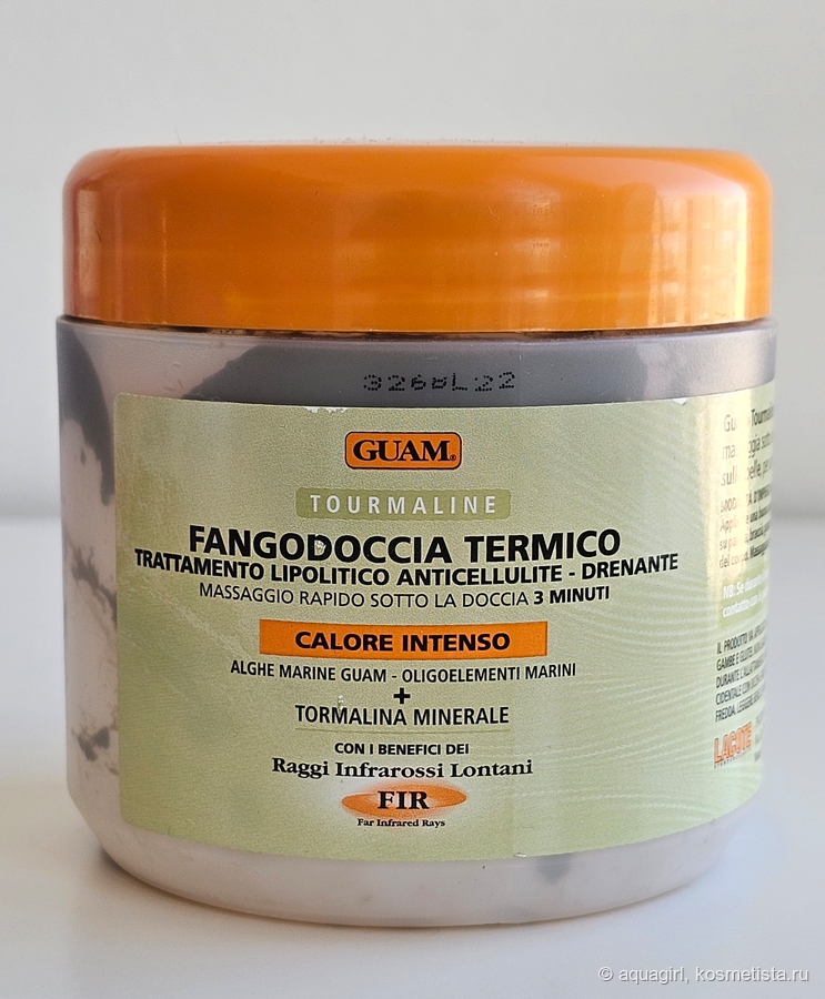 2. Маска для массажа в душе с разогревающим эффектом Guam Tourmaline Fangodoccia Termico Trattamento Lipolitico Anticellulite Drenante, 400 мл.