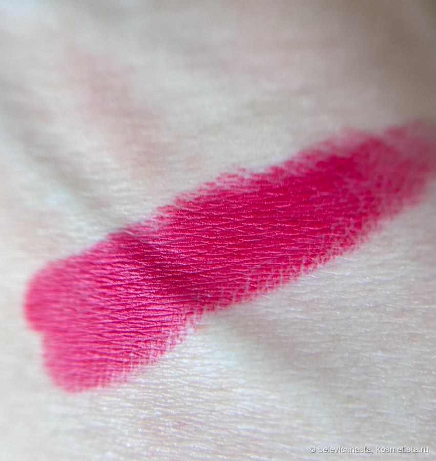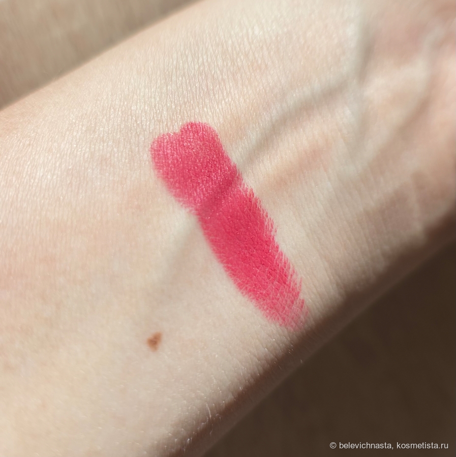 Помада немного пластилиновая, но при этом хорошо отдает цвет в одно касание и не залипает.
