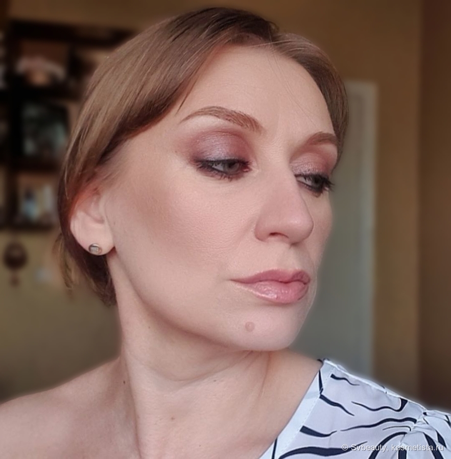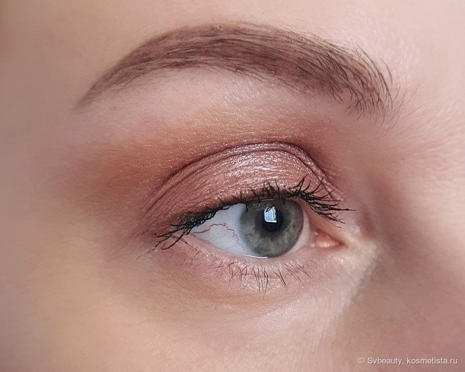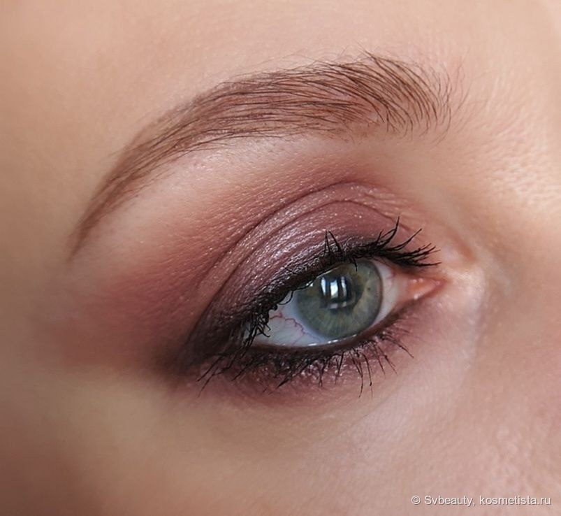 В моно макияже я избегаю этого оттенка на нижнем веке, так как он может создать эффект заплаканных глаз. Однако в сочетании с другими цветами, например, с коричневым карандашом для глаз, его можно смело использовать и на нижнем веке.
