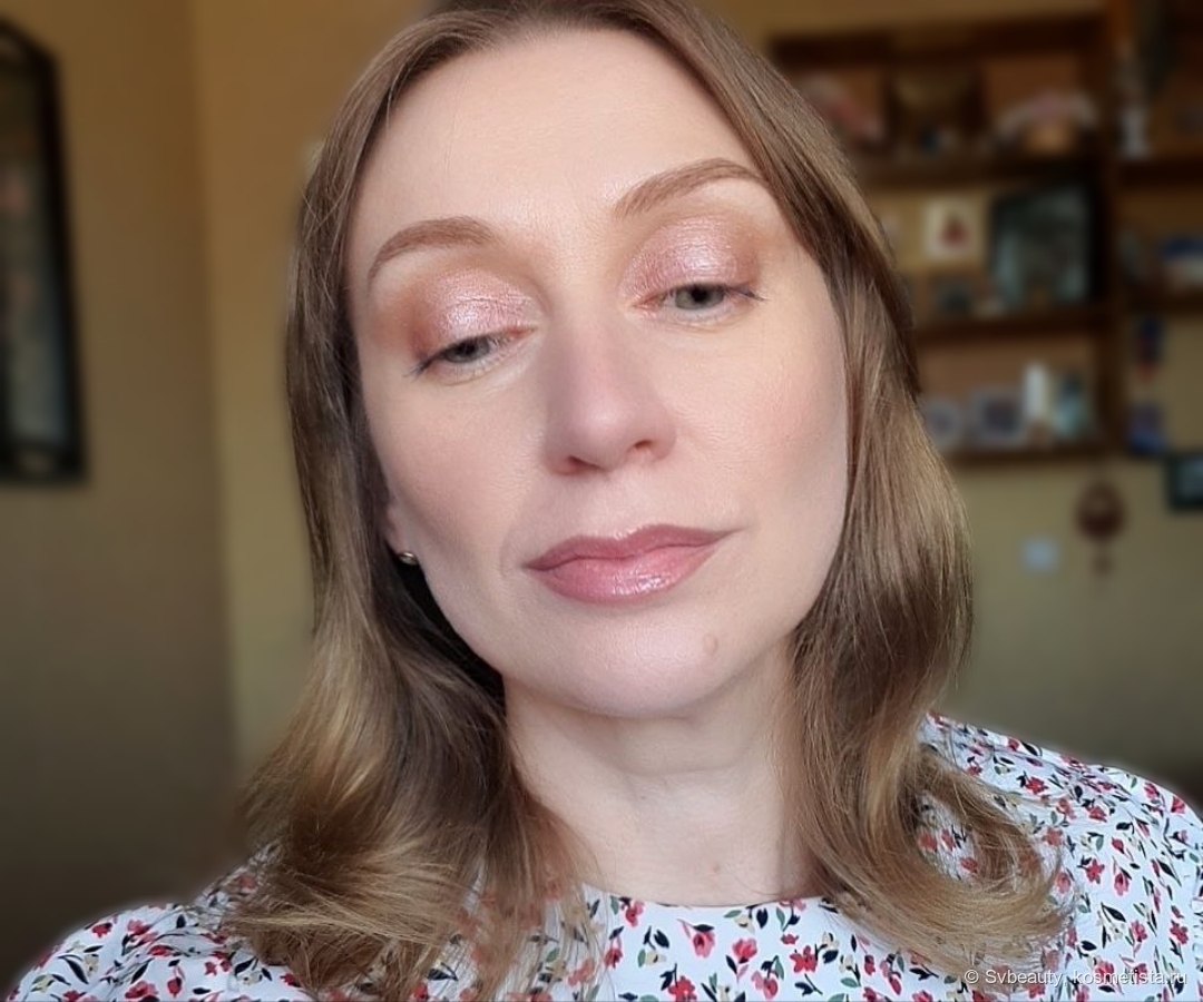 Я обожаю этот оттенок в мономакияже. На внешний уголок глаза я наношу основной цвет и растушёвываю его к внутреннему уголку. Так создаётся красивый плавный переход от затемнённого внешнего уголка к более светлому и прозрачному внутреннему. Кажется, что я использовала два оттенка: один темнее, а другой светлее. Но на самом деле только один. Макияж получается мягким и элегантным, идеально подходящим на каждый день.