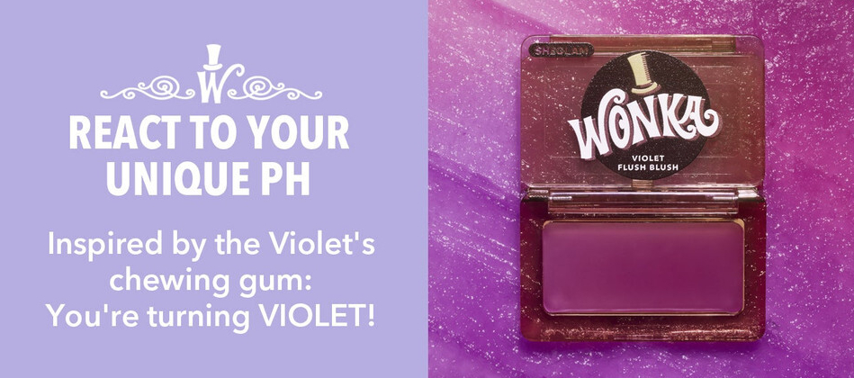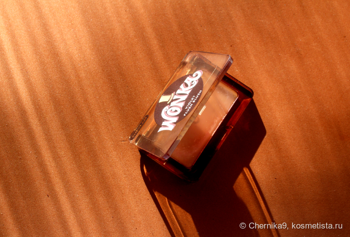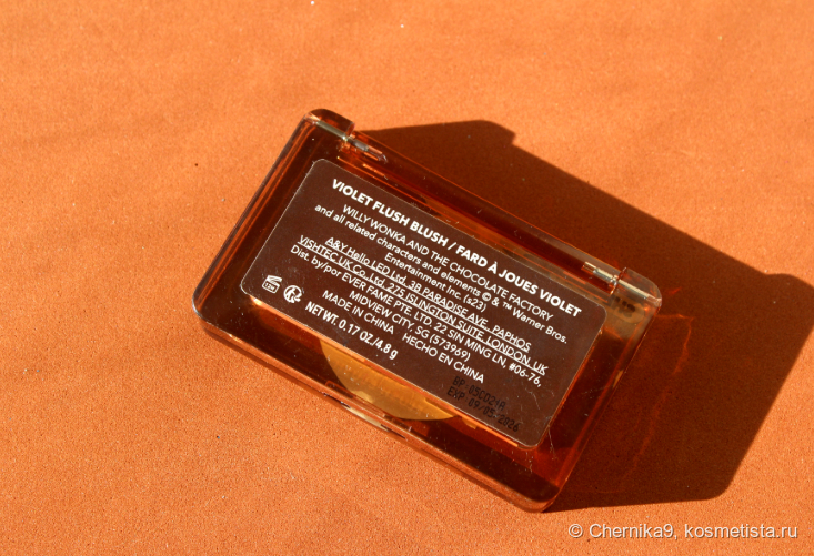 Вообще румяна очень необычные во всех отношениях от упаковки до аромата. Запах у них ягодный, черничный, немного напоминающий жвачку. На обратной стороне упаковке указано название румян, а чуть ниже название коллекции, в которой они вышли. Вонка известен в Америке не только как фильм, но и как шоколад, внутри которого находится билет на шоколадную фабрику, где каждый ребёнок, получивший билет, может своими глазами увидеть, как готовят шоколад да ещё и получить сладкий подарок, но вернёмся к румянам.