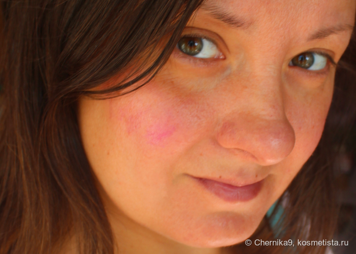 Если растушевать румяна, то на солнце они смотрятся очень красиво. Розовый цвет, холодный, но прозрачный оттенок освежает лицо даже без макияжа.
